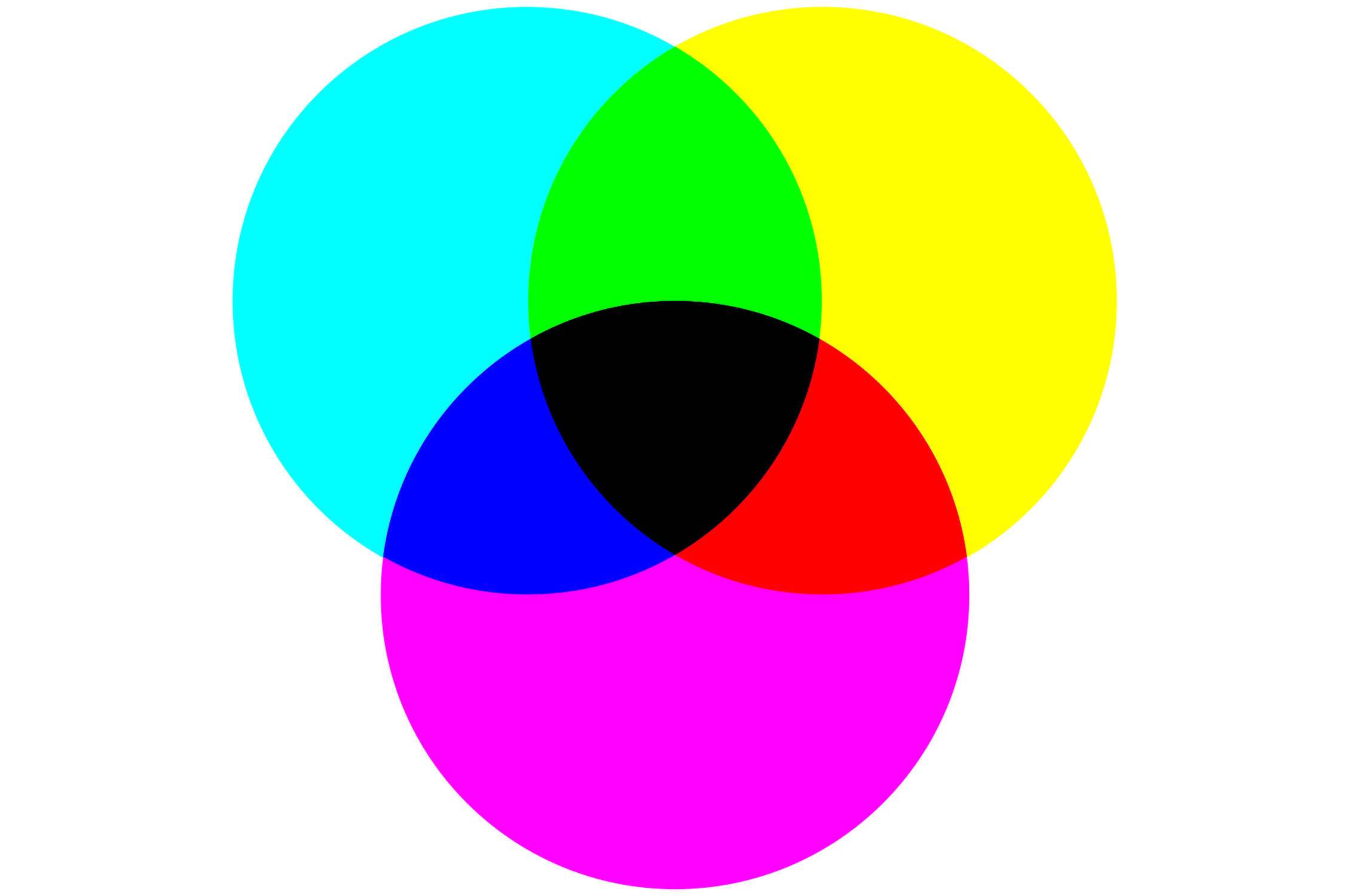 Immer wenn es ums Drucken von Farbe geht, kommt CMYK ins Spiel. Im Gegensatz zum Bildschirm wird hier keine Lichtquelle genutzt, sondern es wird Farbe auf Papier gedruckt. Die Grundfarben Cyan, Magenta und Gelb haben eine subtraktive Wirkung: Sie absorbieren Licht. Das Ergebnis wird dunkler, je mehr Farbe gedruckt wird.