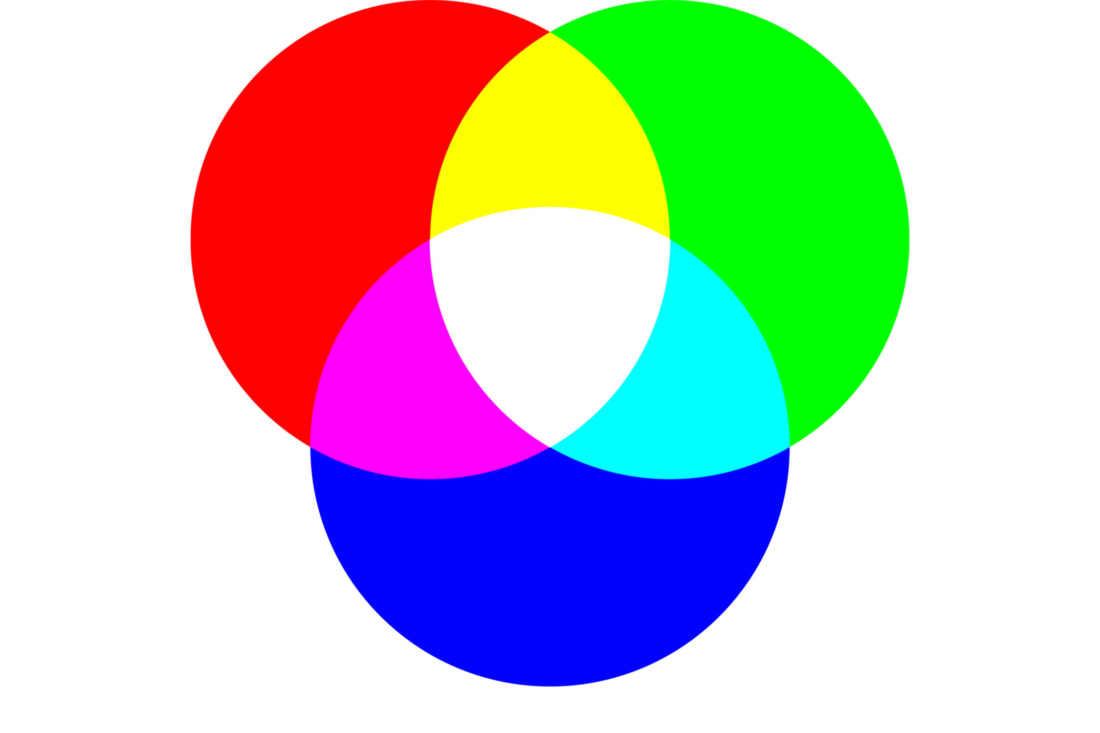 Bei Bildschirmen kommt die additive Farbmischung zum Einsatz. Farben entstehen hier aus Licht: Rot, Grün und Blau addieren sich.1