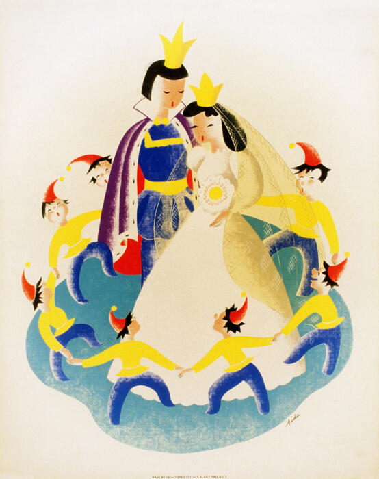 Sie entkommt der bösen Stiefmutter, findet Zuflucht bei sieben Zwergen und wird schließlich durch einen Prinzen erlöst.