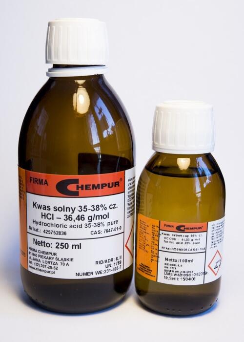 | Salzsäure | HCl | Magensäure im Körper, Metallreinigung, chemische Industrie |