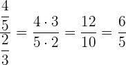 Natürlich kann zusätzlich auch im Nenner ein Bruch stehen. Hier wird der Zählerbruch mit dem Kehrwert des Nennerbruchs multipliziert: