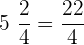 Dafür multiplizierst Du den Nenner mit der ganzen Zahl (4x5=20) und addierst den Zähler hinzu (20+2=22). Der Nenner bleibt derselbe. Das ergibt dann: