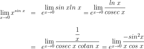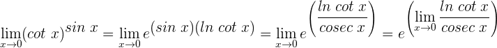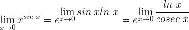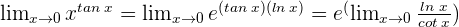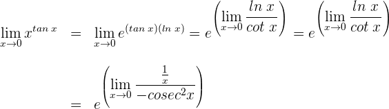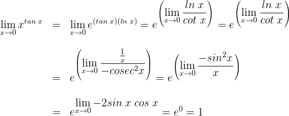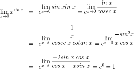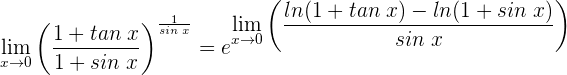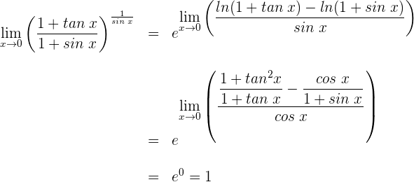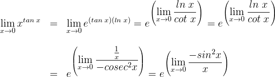 1 Wir setzen ein und erhalten einen unbestimmten Ausdruck. Daher wenden wir die Regeln zum Rechnen mit Logarithmus- und Exponentialfunktionen sowie die Regel von de L'Hospital an