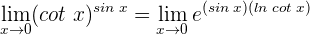 1 Wir setzen ein und erhalten einen unbestimmten Ausdruck. Daher wenden wir die Regeln zum Rechnen mit Logarithmus- und Exponentialfunktionen an, um