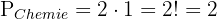 1Die Bücher der einzelnen Fächer müssen alle zusammen stehen. Da die Bücher der einzelnen Fächer zusammengehören und jedes Buch anders ist, können wir zunächst die Anzahl der Permutationen in Mathematik, Physik und Chemie getrennt berechnen. Wir haben also jeweils