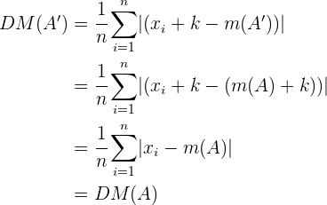 Das heißt, die mittlere absolute Abweichung ist bei einer Veränderung der Menge invariant.