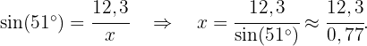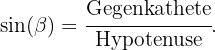 stellt die Hypotenuse des rechtwinkligen Dreiecks dar. Wir haben Informationen zum Winkel und zum gegenüberliegenden Schenkel des Winkels. Da wir also die Hypotenuse ermitteln wollen, verwenden wir die Sinusfunktion: