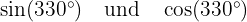 , welcher äquivalent ist. Also berechnen wir die trigonometrischen Funktionen für den Winkel
