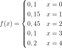 Gegeben ist eine diskrete Zufallsvariable , deren Wahrscheinlichkeitsfunktion wie folgt ist: