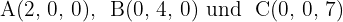 Ermittle die Achsenabschnittsform der Ebene, die durch folgende Punkte verläuft