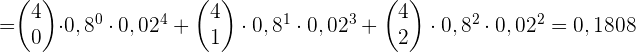 Die Wahrscheinlichkeit, dass ein produzierter Artikel fehlerhaft ist liegt bei p = 0,02.