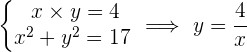 17Finde zwei Zahlen, deren Produkt 4 und die Summe ihrer Quadrate 17 ist.