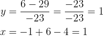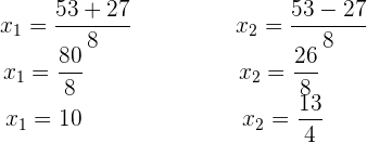 Wir bestimmen eine Unbekannte der ersten Gleichung und setzen den resultierenden Ausdruck in die zweite ein. Danach lösen wir die quadratische Gleichung.