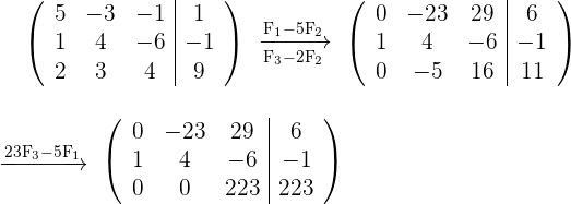 Wir bilden die zum System gehörende Koeffizientenmatrix und lösen.