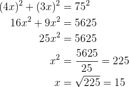 sind, wie die Abbildung zeigt. Wir wenden den Satz des Pythagoras an und berechnen den Wert der Variable.