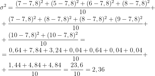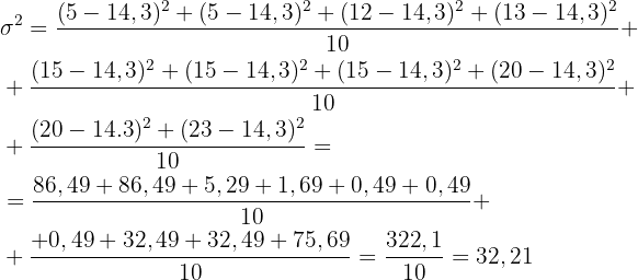 Wie in den vorherigen Aufgaben berechnen wir zunächst den Mittelwert und verwenden diesen dann, um die Varianz zu ermitteln: