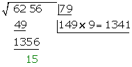 Das bedeutet, dass 79 die Wurzel und 15 der Rest ist.