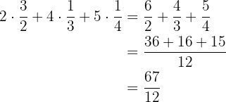 Wir multiplizieren jede Anzahl von Elementen mit dem entsprechenden Bruch. Wir bringen auf einen gemeinsamen Nenner und addieren