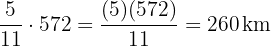 entspricht den drei Teilen des Weges. Also berechnen wir, wie viel ein Teil ist