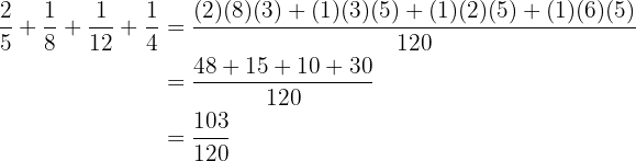 Um diese Aufgabe zu lösen, müssen wir die Brüche der anderen Posten addieren und das Ergebnis von
