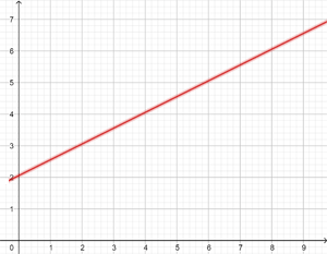Diese Funktion bezieht sich auf alle Punkte der Koordinaten (x,y), wobei y=2. Das heißt, auf alle Punkte (x,2), wobei x eine unabhängige Variable ist, der ein beliebiger Wert zugewiesen werden kann. Zum Beispiel (1,2) (-4,2) (5,2) etc.