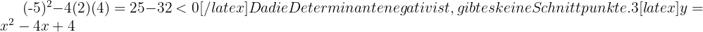 und schließen aus ihrem Vorzeichen, ob die Parabeln die x-Achse zweimal, einmal oder überhaupt nicht schneiden.