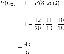 minus die Wahrscheinlichkeit, dass beim Ziehen von