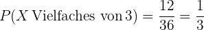 3 Die Wahrscheinlichkeit, dass die erhaltene Zahl ein Vielfaches von 3 ist.