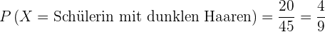 Schüler sind dunkelhaarig. Bestimme die Wahrscheinlichkeit für folgende Fälle: