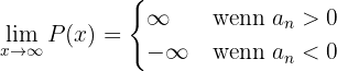 Mit anderen Worten: Das Vorzeichen des Grenzwerts ist das gleiche wie das Vorzeichen des Leitkoeffizienten des Polynoms.