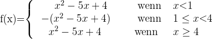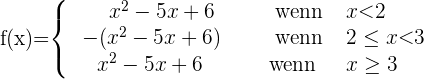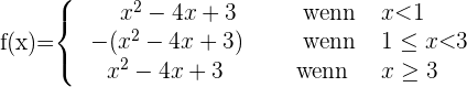 3 Wir definieren die Funktion abschnittsweise, wobei zu berücksichtigen ist, dass in den Intervallen, in denen negativ ist, sich das Vorzeichen der Funktion ändert
