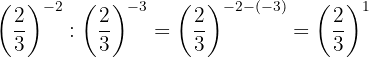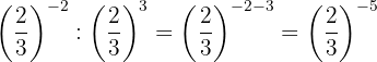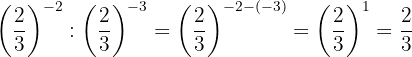 Die Potenzen haben die gleiche Basis, so dass nach Gesetz 4 die Basis die gleiche ist und die Exponenten subtrahiert werden