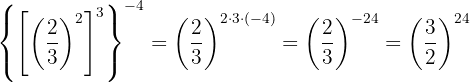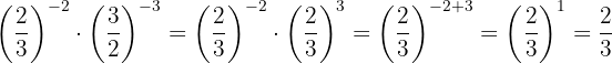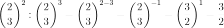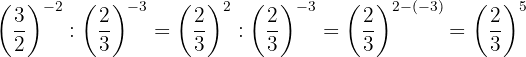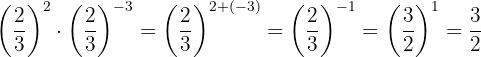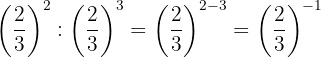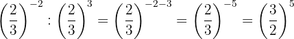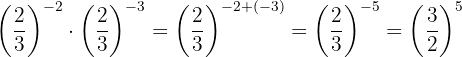 Um das negative Vorzeichen aus dem Exponenten zu entfernen, müssen wir den Kehrbruch schreiben; dann ist nach Gesetz 2 jeder Bruch, der mit 1 potenziert wird, gleich demselben Bruch