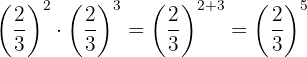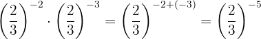 Die Potenzen haben die gleiche Basis, so dass nach Gesetz 3 die Basis die gleiche ist und die Exponenten addiert werden.