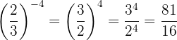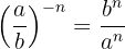 Um das negative Vorzeichen aus dem Exponenten zu entfernen, müssen wir den Kehrbruch schreiben; dann ist nach Gesetz 2 jeder Bruch, der mit 1 potenziert wird, gleich demselben Bruch