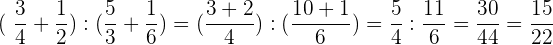 Wir führen die Rechenschritte innerhalb der Klammern durch, dividieren die Ergebnisse und vereinfachen.