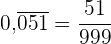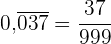 Da es sich um eine reine periodische Zahl handelt, schreiben wir im Zähler die Zahl ohne Komma und im Nenner 3 Neunen, da es 3 periodische Ziffern gibt.