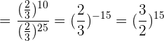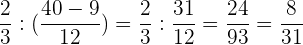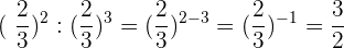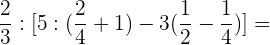 Wir dividieren 2/3 durch das Ergebnis der Klammer und vereinfachen