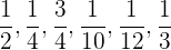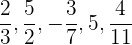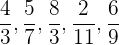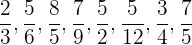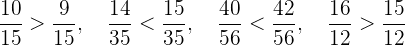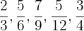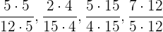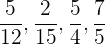 \begin{equation*}\frac{2}{15}< \frac{5}{12}< \frac{5}{4}<\frac{7}{5}\end{equation*}[/latex]