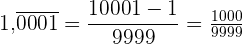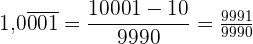 Da es sich um eine rein periodische Zahl handelt, schreiben wir im Zähler die Zahl ohne Komma abzüglich des Teils, der außerhalb der Periode liegt. Im Nenner stehen 4 Neunen, weil es 4 periodische Ziffern gibt.