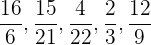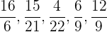 Wir werden versuchen, alle Brüche mit gleichem Zähler und gleichem Nenner zu bilden, indem wir die Zahlen, die keine Primzahlen sind, in Faktoren zerlegen.