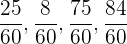 \begin{equation*}\frac{8}{60}< \frac{25}{60}< \frac{75}{60}< \frac{84}{60}\end{equation*}[/latex]