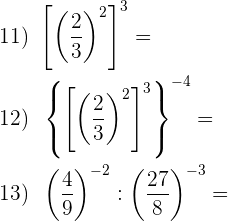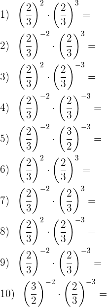 11Bei Aufgabe 11) denken wir daran, dass man zur Multiplikation von Potenzen mit der gleichen Basis die Exponenten multipliziert: