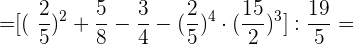 Zunächst rechnen wir mit den Produkten und gemischten Zahlen in den Klammern: