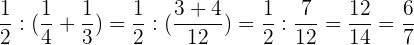 Zuerst addieren wir die Terme innerhalb der Klammer, dann dividieren wir die Brüche und schließlich vereinfachen wir.