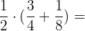 Wir führen die Division und Multiplikation der Klammern durch und vereinfachen die Ergebnisse:
