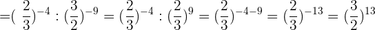 13Bei Aufgabe 13) zerlegen wir die Zahlen in Faktoren, innerhalb jeder Klammer dividieren wir Potenzen mit gleichem Exponenten. Also teilen wir die Basen und lassen den Exponenten gleich: