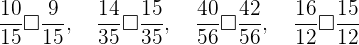 Vergleiche die gegebenen Brüche und füge entsprechend das Zeichen > oder < ein.
