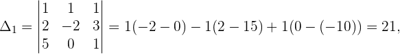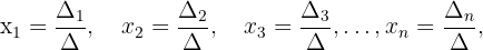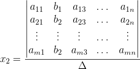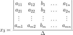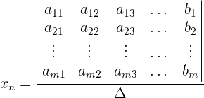 sind hierbei die Determinanten, die man erhält, wenn man die Koeffizienten des 2. Glieds (konstante Glieder) in der 1. Spalte, in der 2. Spalte, in der 3. Spalte und der n-ten Spalte jeweils ersetzt.