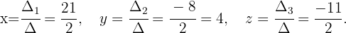 Jedes Cramersche System hat eine eindeutige Lösung, die durch die folgenden Ausdrücke gegeben ist: